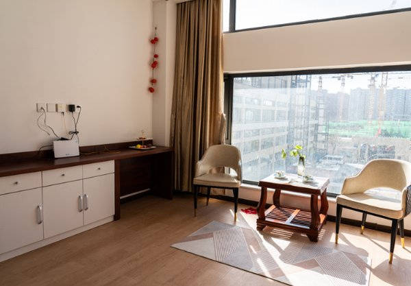 在居住环境方面,纳兰园坚持“匠心筑家、舒适宜居”的理念,打造高端雅致的居住空间。公寓由13套四合院组建而成,共设床位360余张,各院自成一体、互不干扰,均配备独立的活动室和私人庭院,保证了长辈们的居住私密性和专属感。院内设有双人标间、大床房、单人间、大小套房、独栋别墅等多种高端房型,其中独栋别墅和豪华套房更是为高净值长辈量身定制,空间宽敞开阔,装修精致典雅,融入中式传统文化元素与现代高端家居理念,配备高端舒适的家具、品牌家电和齐全的适老化设施,每一个细节都经过精心考量,既满足长辈们的居住需求,又彰显长辈们的品质追求。房间通风透气、采光充足,推窗可见山水美景,让长辈们在舒适的居住环境中,享受与自然相融的惬意时光。